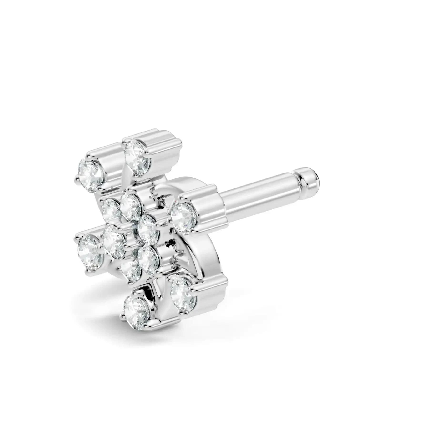 silver Diamond Petal Nose Pin